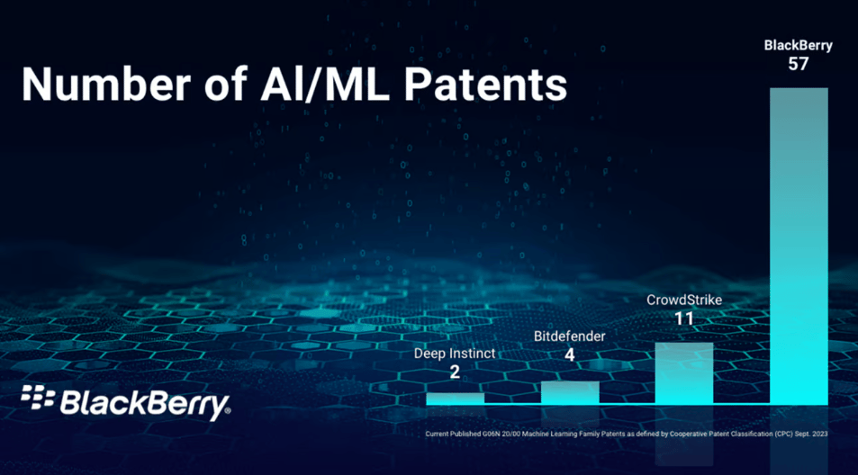 Dato curioso: BlackBerry tiene más de 5 veces más patentes de IA/ML que sus competidores, lo que demuestra su silencioso legado como innovador en IA.